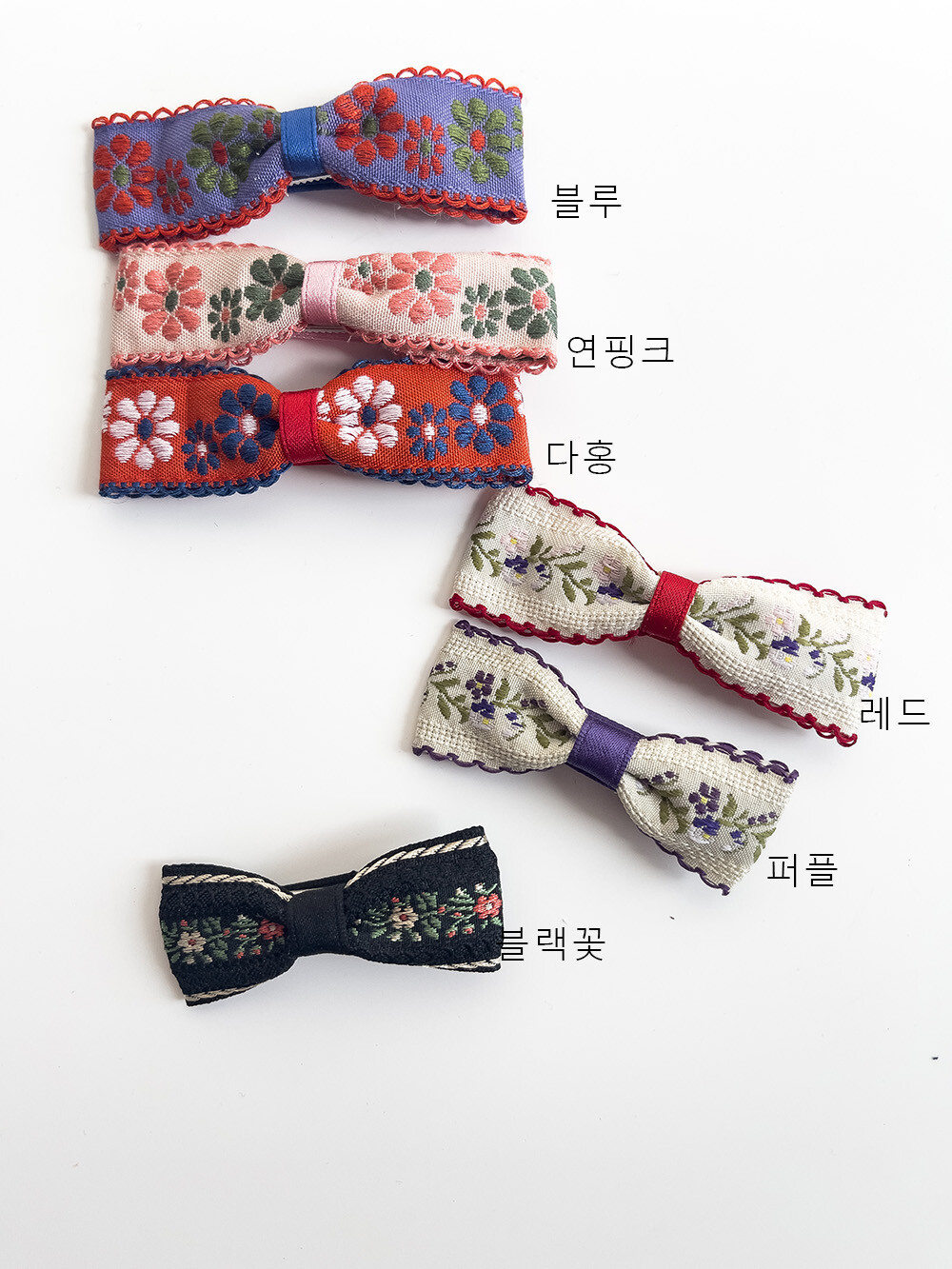 다양한 컬러로 1개씩 제작된 자수리본핀으로