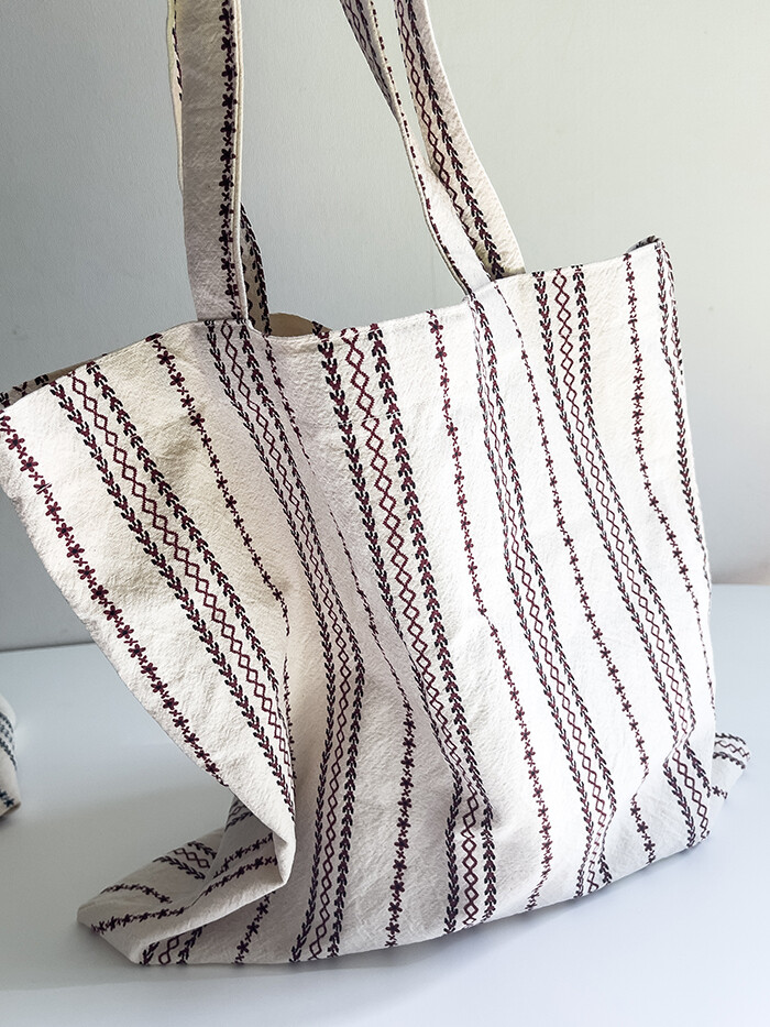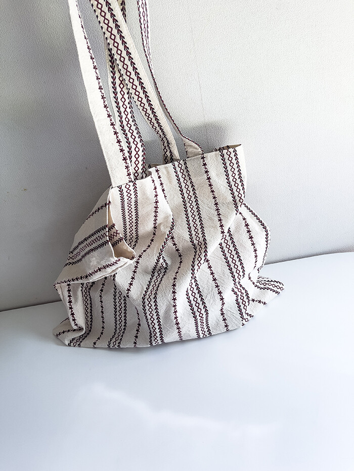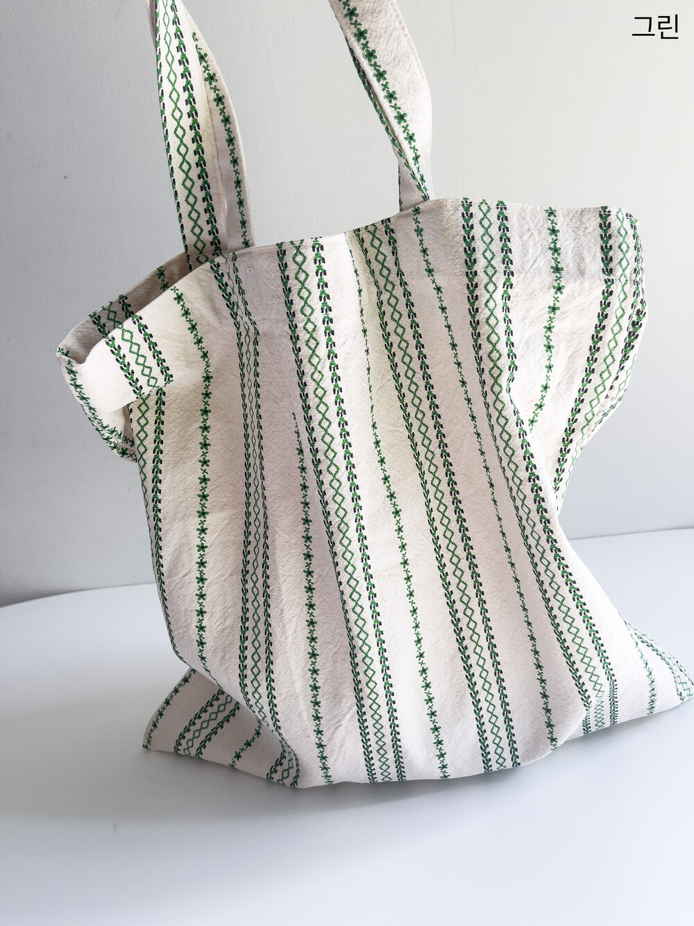 잔잔한 에스닉 패턴의 빅사이즈 에코백입니다.