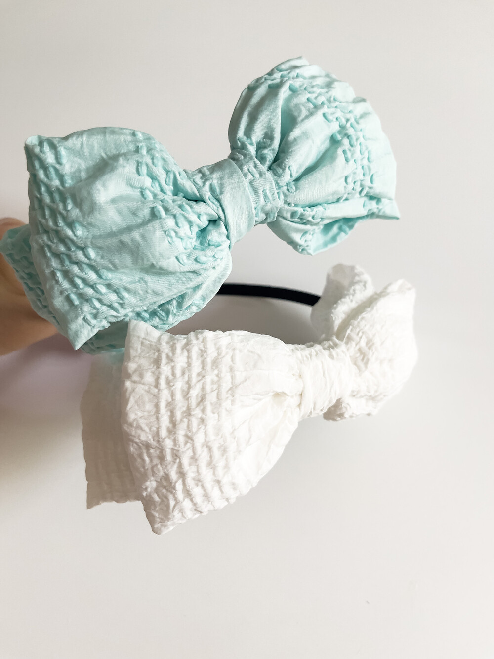 몽글몽글 가볍고 포근한 원단으로 제작한 왕리본 헤어밴드입니다.