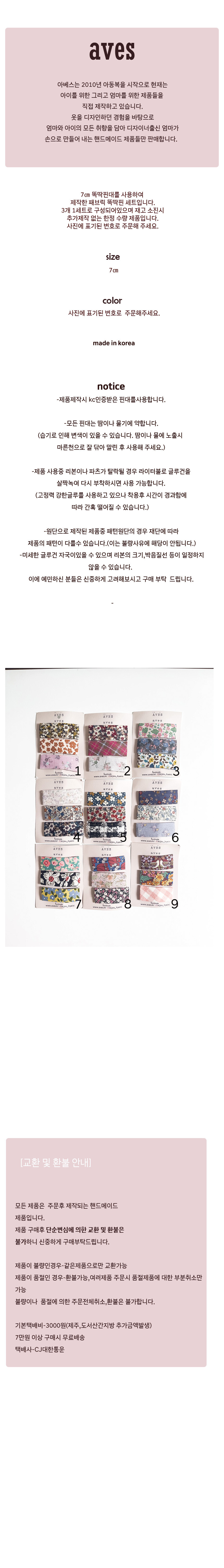 7cm 패브릭 똑딱핀 세트(3개1세트)