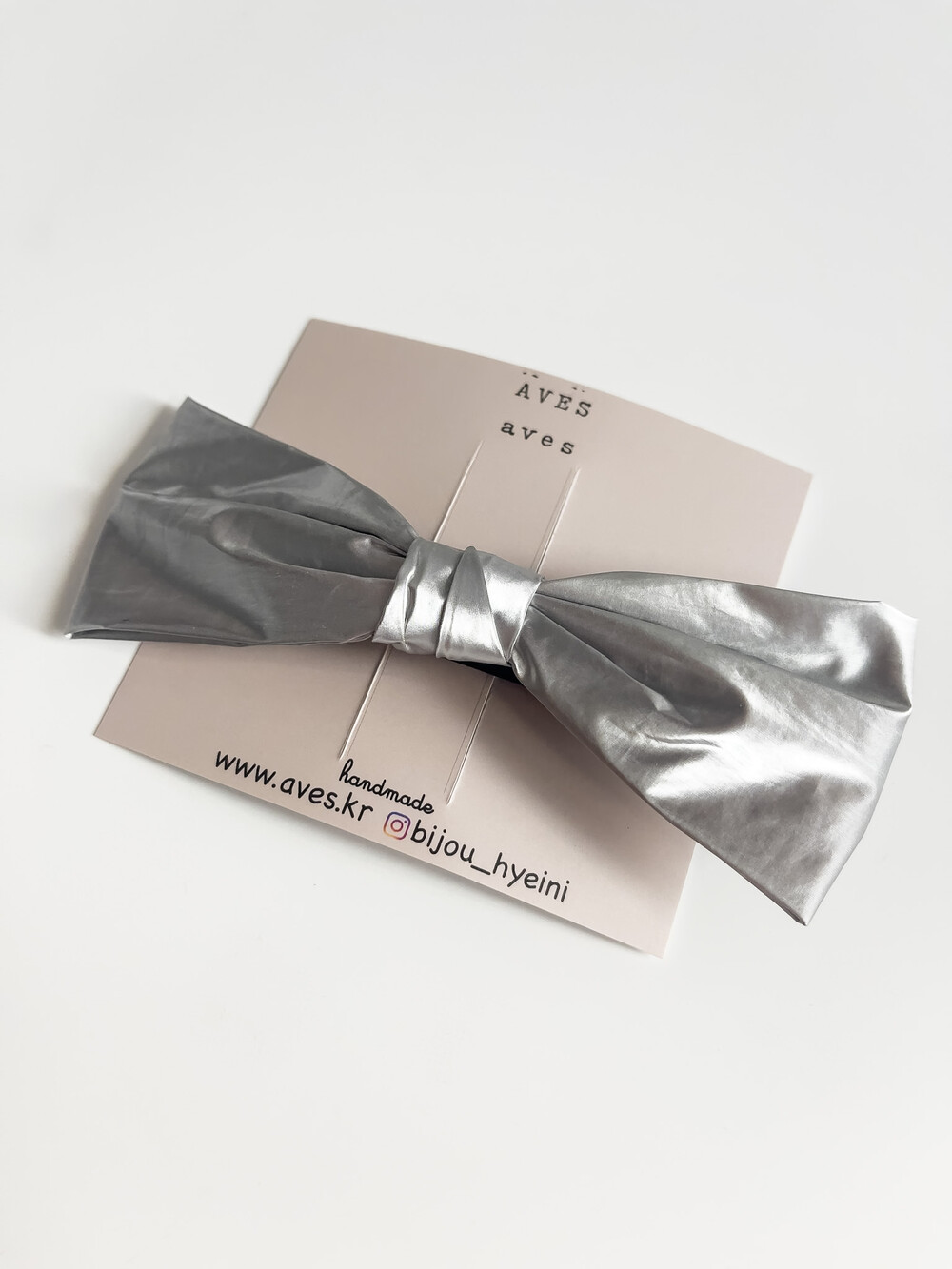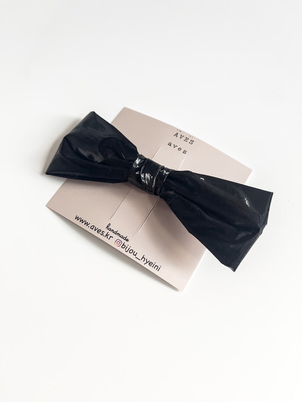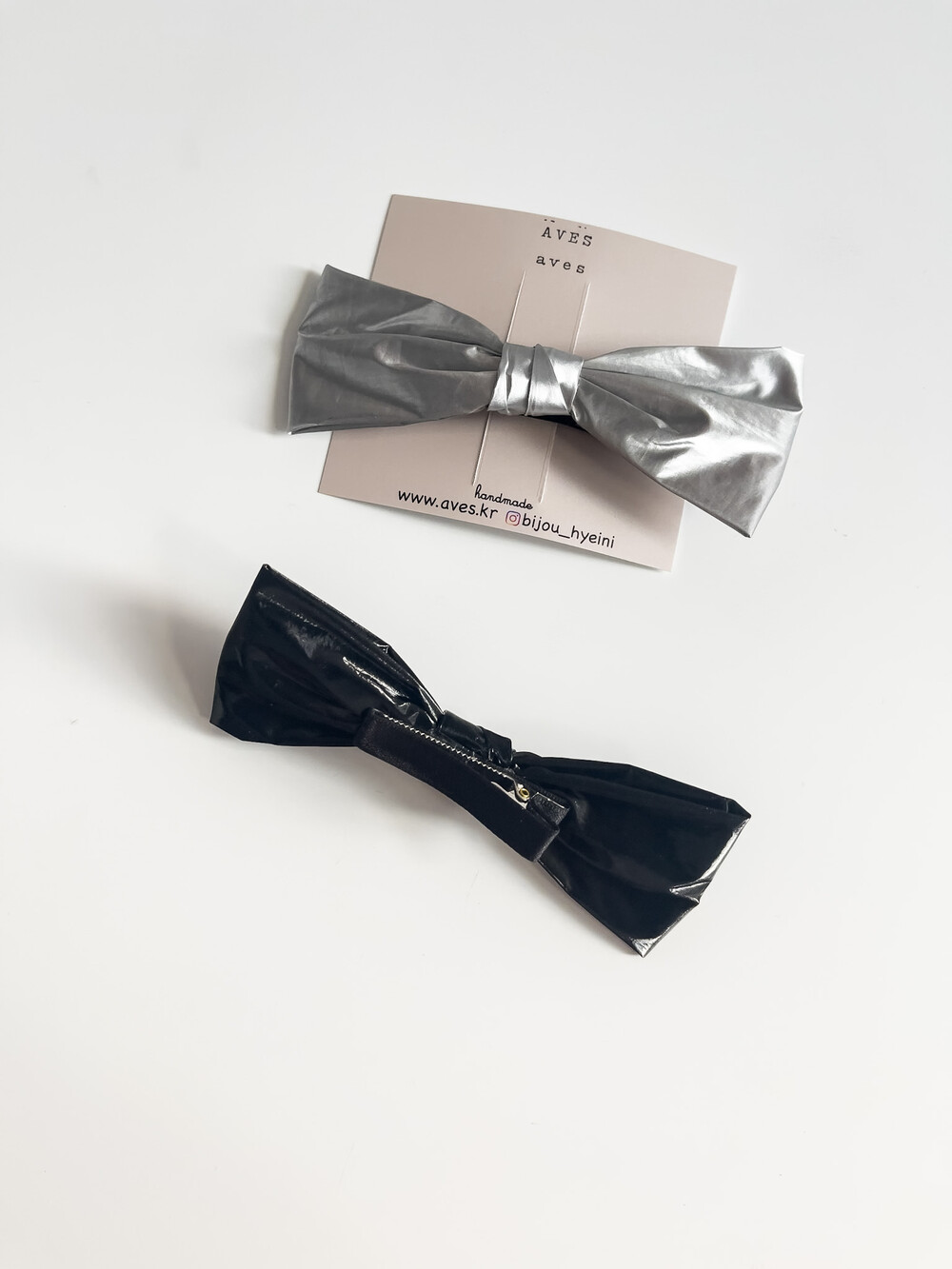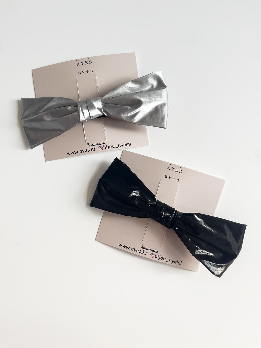 글로시한 소재로 제작한 심플한 디자인의 리본핀입니다.