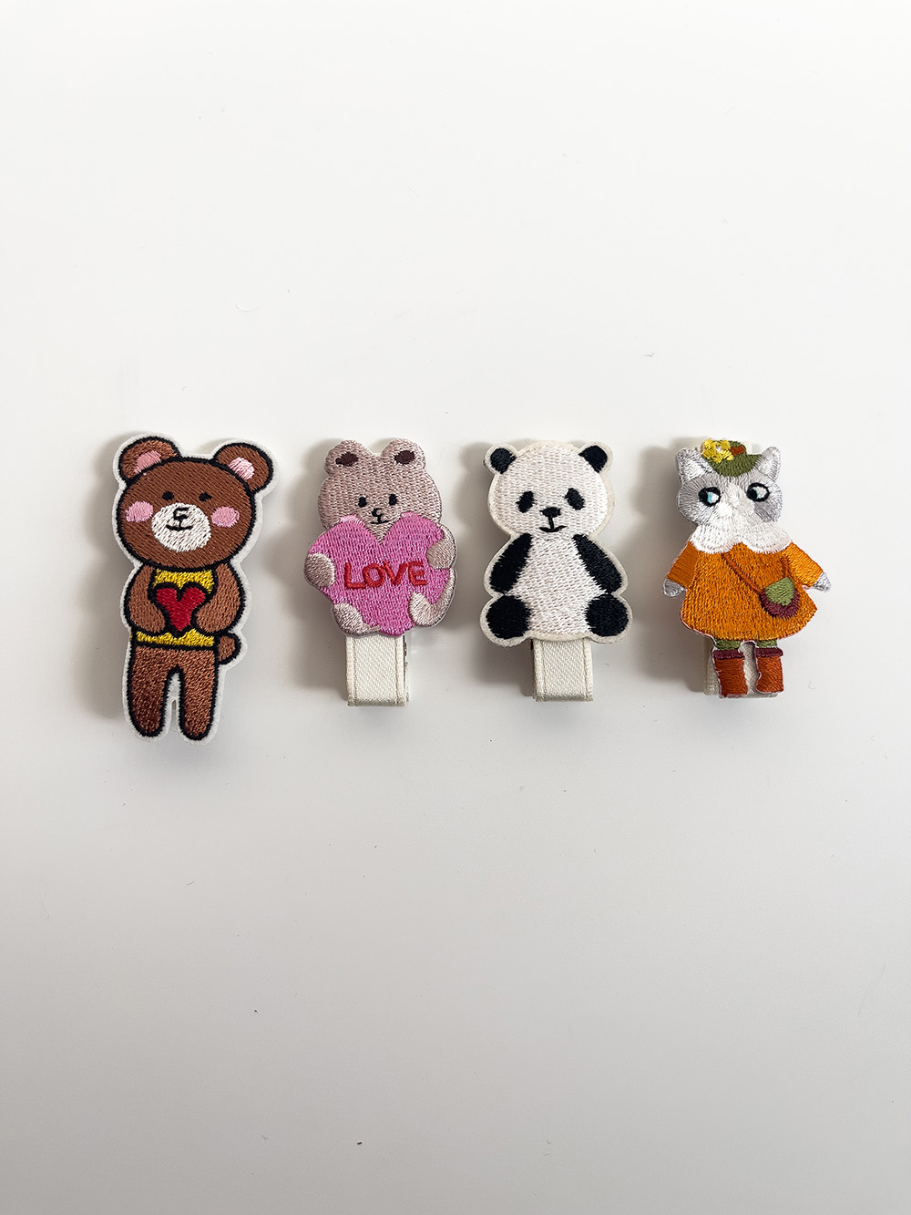 귀여운 동물자수로 구성된 집게핀 입니다.