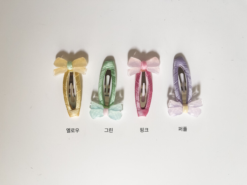 파스텔톤의 미니 사이즈 리본 파츠로 장식한 똑딱핀이예요.