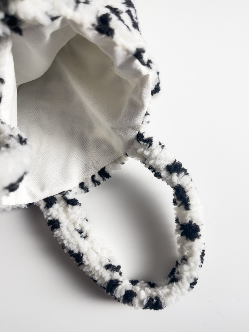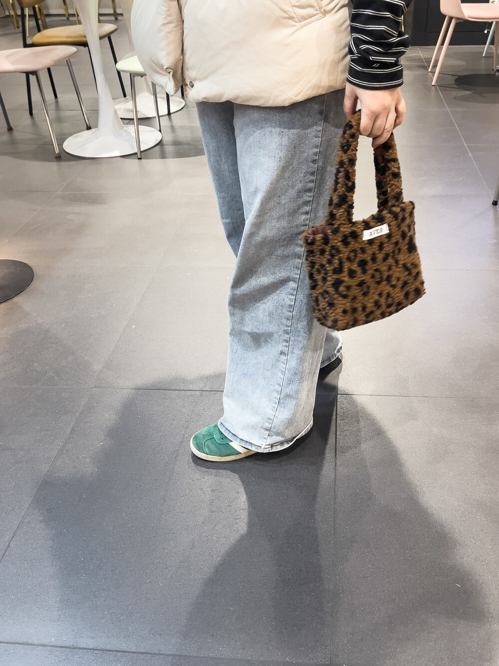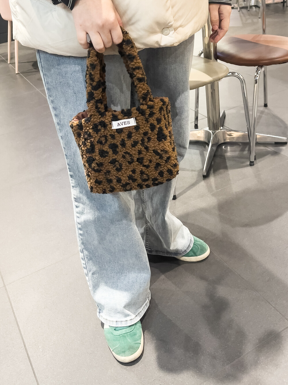 뽀글이 호피 원단으로 제작한 귀여운 느낌의 미니백입니다.