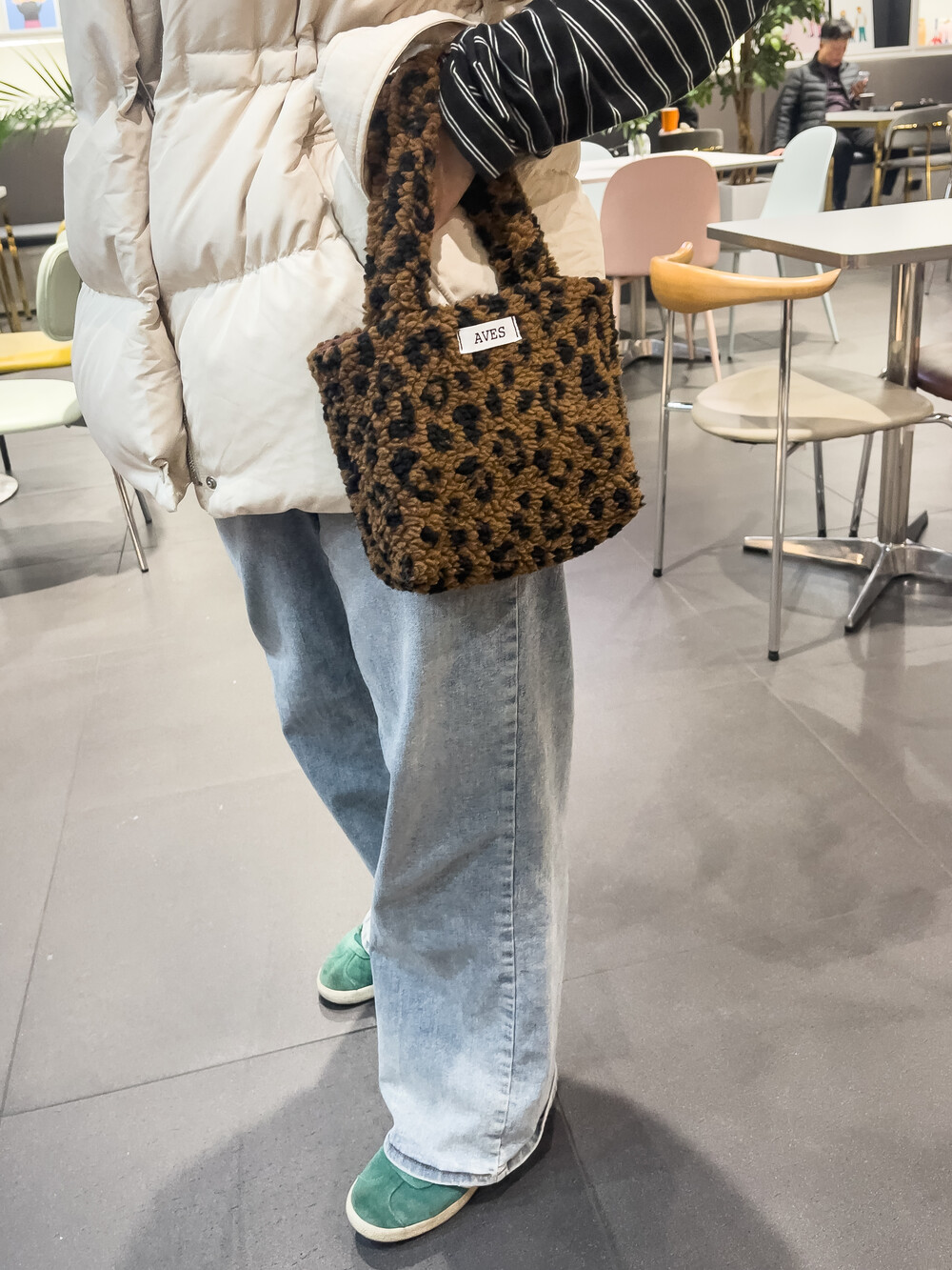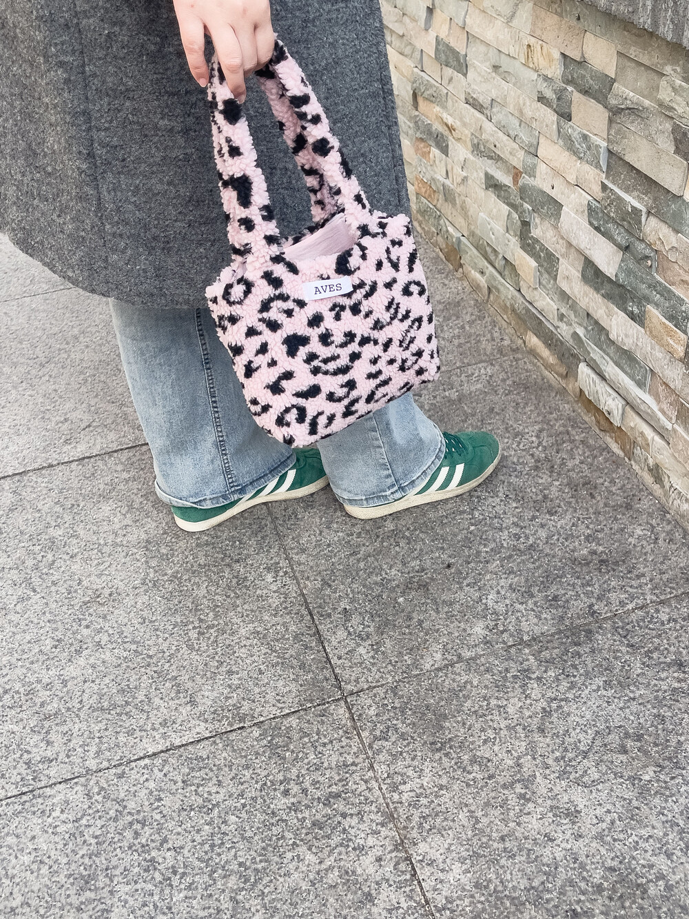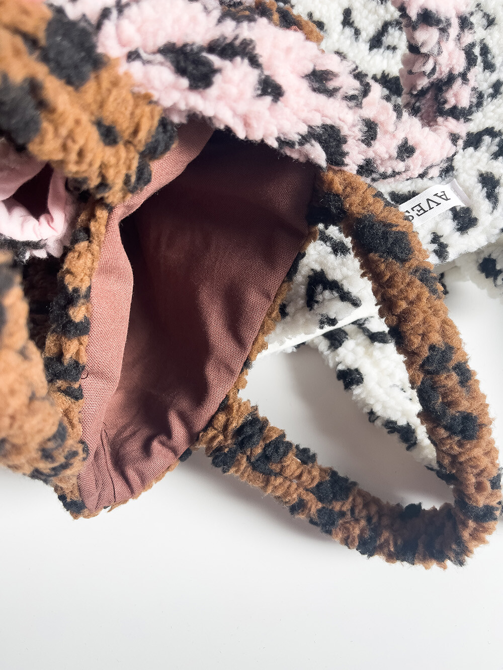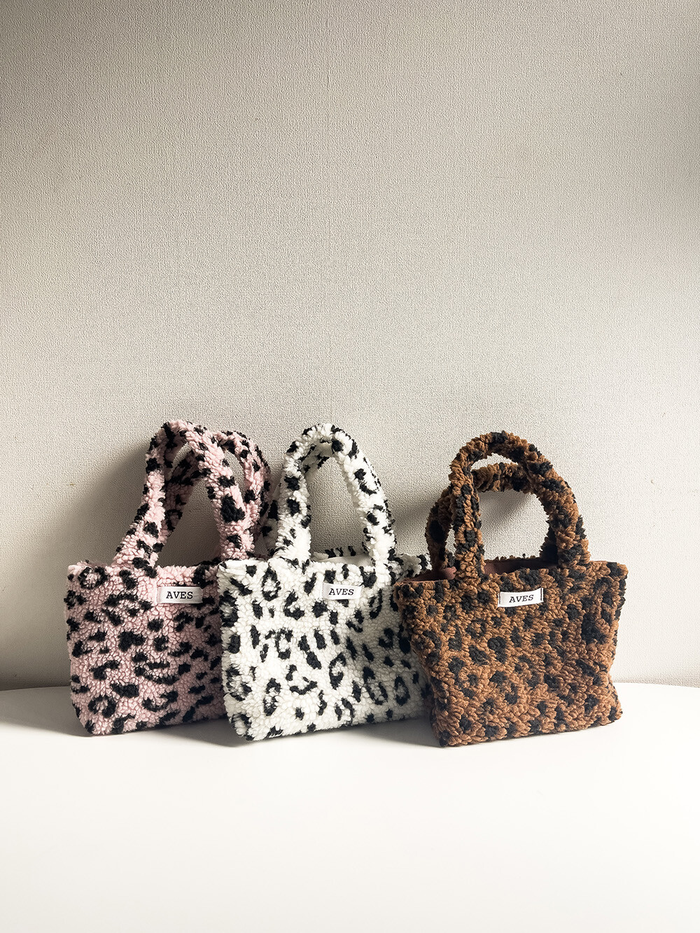 뽀글이 호피 원단으로 제작한 귀여운 느낌의 미니백입니다.