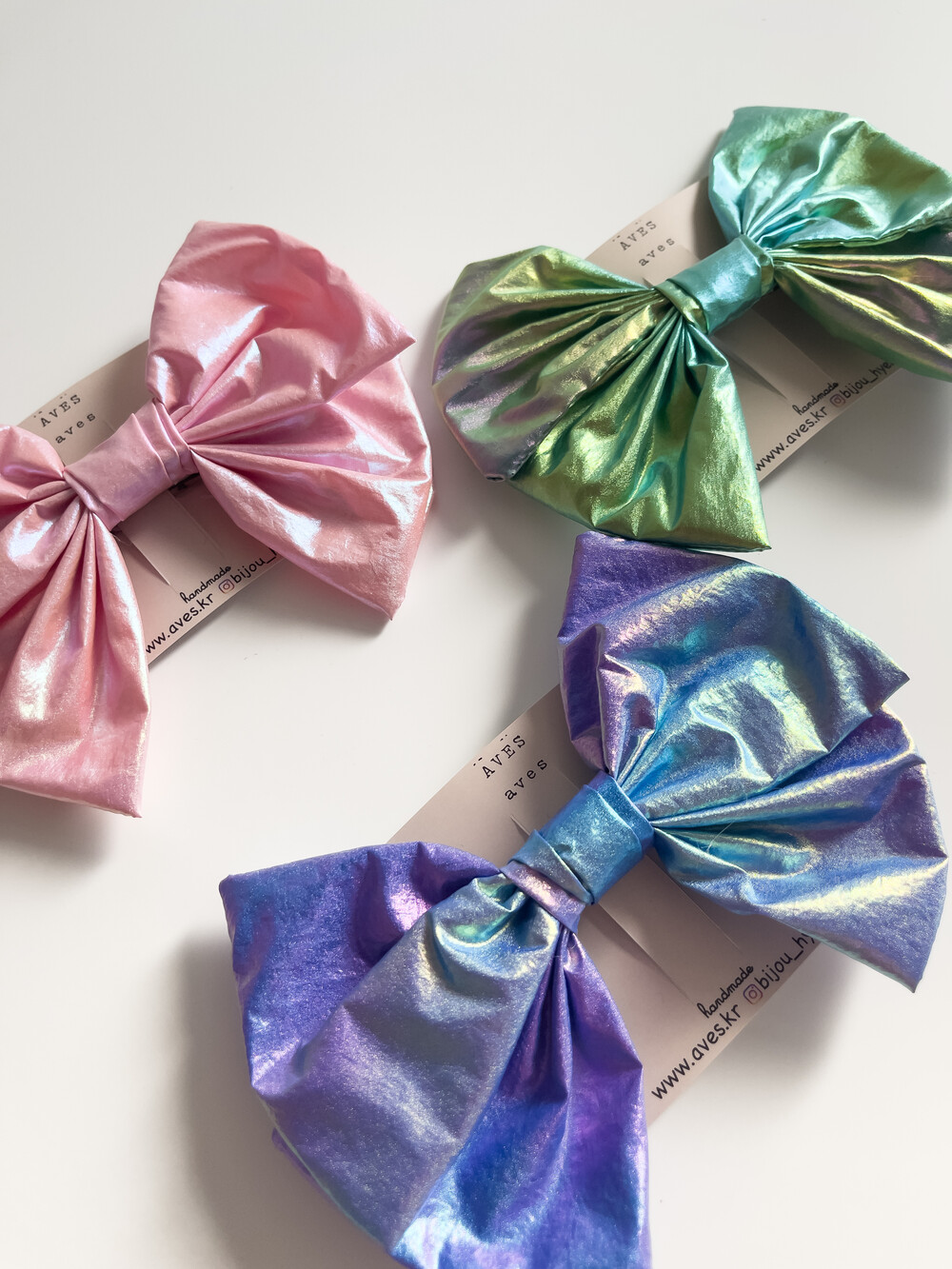 빛에 따라 예쁘게 빛나는 리본헤어핀이예요.